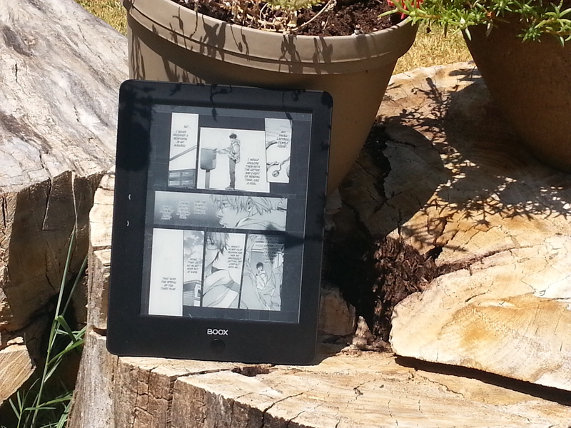 My cell phone camera isn't the best but this should give you an idea. It's great in direct sunlight. It's decent in normal lighting. You may still want a tablet for color manga, they don't look as good in grayscale. |