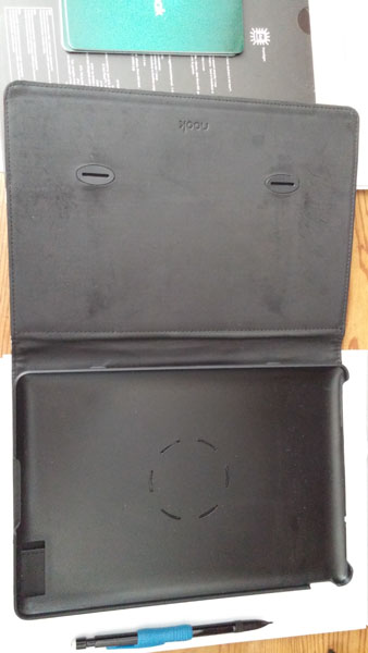 How this happened is a real mystery since I do not abuse my digital equipment! Leaning more toward "something happened" rather than "spontaneous". I use my Nook HD+ cover which is not only rigid, but the unit fits snugly in the hard black plastic swivel section so the 840 has always been well protected. (See photos). Last edited by p38lightning; 11-07-2015 at 09:17 AM. Reason: Correction |