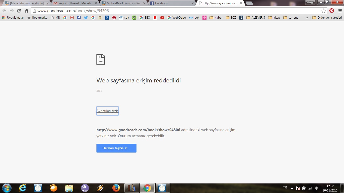 I have problem with goodreads plugin. I can't download metadata from goodreads. When I try to open book's link through calibre I have error 403. I'm waiting a little It's opening or when I try to download mutliple books metadata I can download 4-5 books metadata and It's giving same error. I'm waiting a little and then I can download 4-5 books metadata.