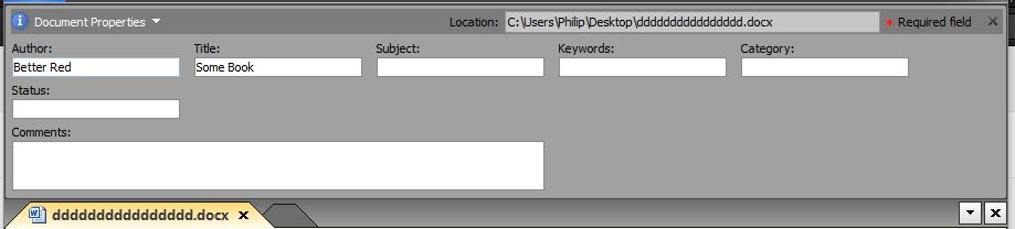 Again, though, the average user is not going to know this. More importantly, if, as Kevin says, "using the name of the file as a 'title' is not a good idea to say the least," then putting in any title is a bad thing, and thus clicking on Change Title and inputting the title is not good. (I tried clicking on Change Title and leaving it blank, thinking perhaps that maybe Word would add the tag but without any content, but no luck.)
