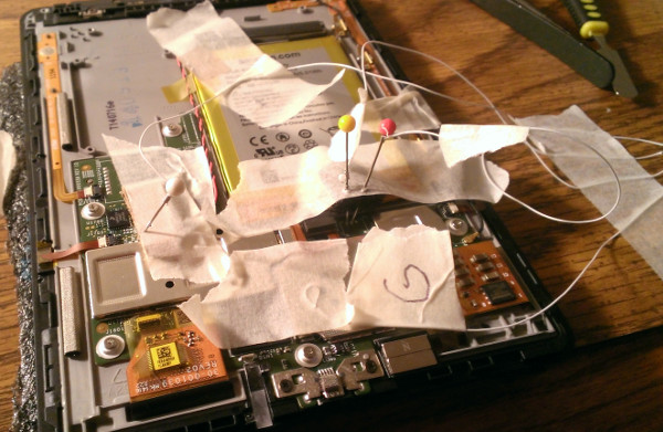 If you look through your Puttylog you will find quite a number of battery voltage reports during the various reboot attempts. The battery voltages range from 4.013v to 4.030v with quite a few readings in between. So it is almost certain that there is raw battery voltage on the small copper pad you mentioned. The spark was most likely a direct short to ground which could have several effects. Two guesses of what happened might be tripping a high current thermal fuse in the battery (if this particular battery does have one) which would normally reset when the current stabilises or an induced low voltage brown out condition on the processor (caused by the temporary short to ground) which would cause the processor to reboot. I haven't looked at the specs of this particular processor but the atmega microprocessors that I normally work with have such a brown out function. The good news is that now you have found out how easy it is to actually do the job you won't hesitate to try it again should the need arise. What I found and you have shown also is that it is very easy to set up temporary connections with just a few wires and some tape which are plenty good enough to install the jailbreak. |