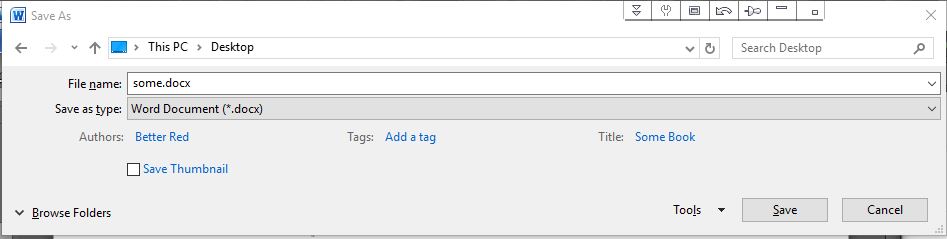 Again, though, the average user is not going to know this. More importantly, if, as Kevin says, "using the name of the file as a 'title' is not a good idea to say the least," then putting in any title is a bad thing, and thus clicking on Change Title and inputting the title is not good. (I tried clicking on Change Title and leaving it blank, thinking perhaps that maybe Word would add the tag but without any content, but no luck.)