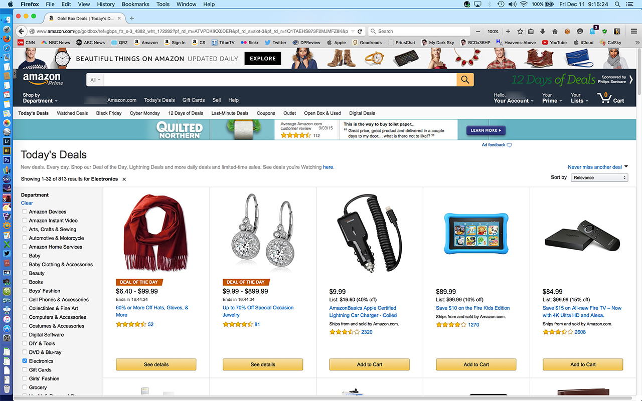 Wow, Amazon just keeps getting worse in how they categorize items and even worse still in what turns up when you do searches. I tried to limit the Deals to just Electronics, as seen by the attached screenshot. I'm not really sure why Amazon thinks women's clothing and jewelry belong in the Electronics category. Sometimes using their Search function turns up total garbage.