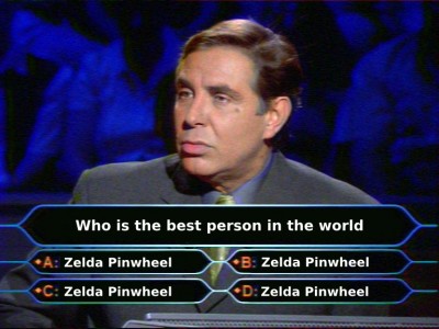 ![]() (I don't really watch TV. The most experience I've had with "Who wants to be a millionaire" was in the Dr. Who episode at the end of the first new season, which I watched on DVD.) |