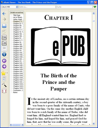 What I'm sure it's doing wrong is rendering the "I - The Birth of the Prince and the Pauper" line, it should be ignored in the text flow (and, ideally, displayed as a page header from the next page).