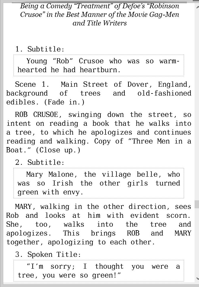 @Hitch -- I'm personally quite unfond of Courier, and use Monaco or BP Mono for coding. I am considering looking for a typewriter clone for these books, but.... @dgatwood -- I will give Deja Vu a try. But I must say, I am starting to lean more and more to just using the body font, and let it go at that. Readability trumps authenticity, in my mind. I have struck 4 or 5 of these parodies so far, and they are all laid out differently, and only one of them looks anything like an actual screenplay. So still, my major task is finding a better way to format complete paragraphs of dialog. If I am not going to try to be "authentic," the borders might be a fairly good way to go. I don't like the look of small-caps or all-caps, so it's good that they aren't "authentic." I am getting incoherent, it is time to go home and sleep. |