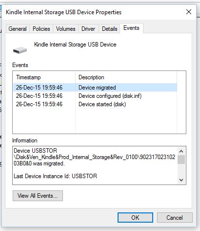 I rebooted and, once again the Kindle is found. Note the entries (was the first time I attached the K4 to W10 ) USB Vid adapter and K4 do not play together. Someone is walking into the others buffers? |