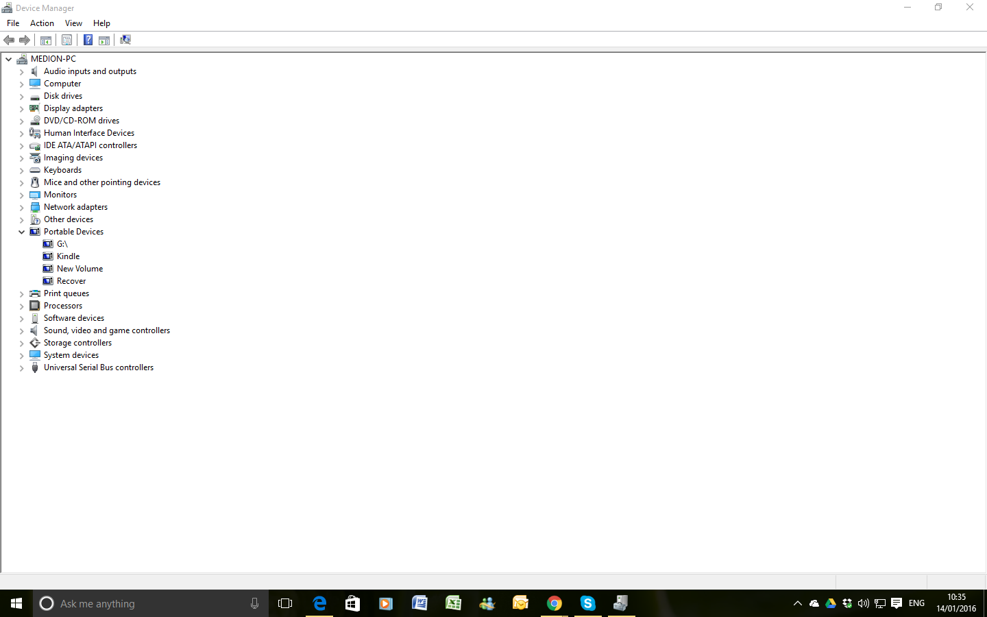 As you can see the win 10 is recognising the kindle but not the Calibre program. The third screen shot shows the small windo opened by Win 10 to indicate it has detected the kindle and assigned a letter to it |