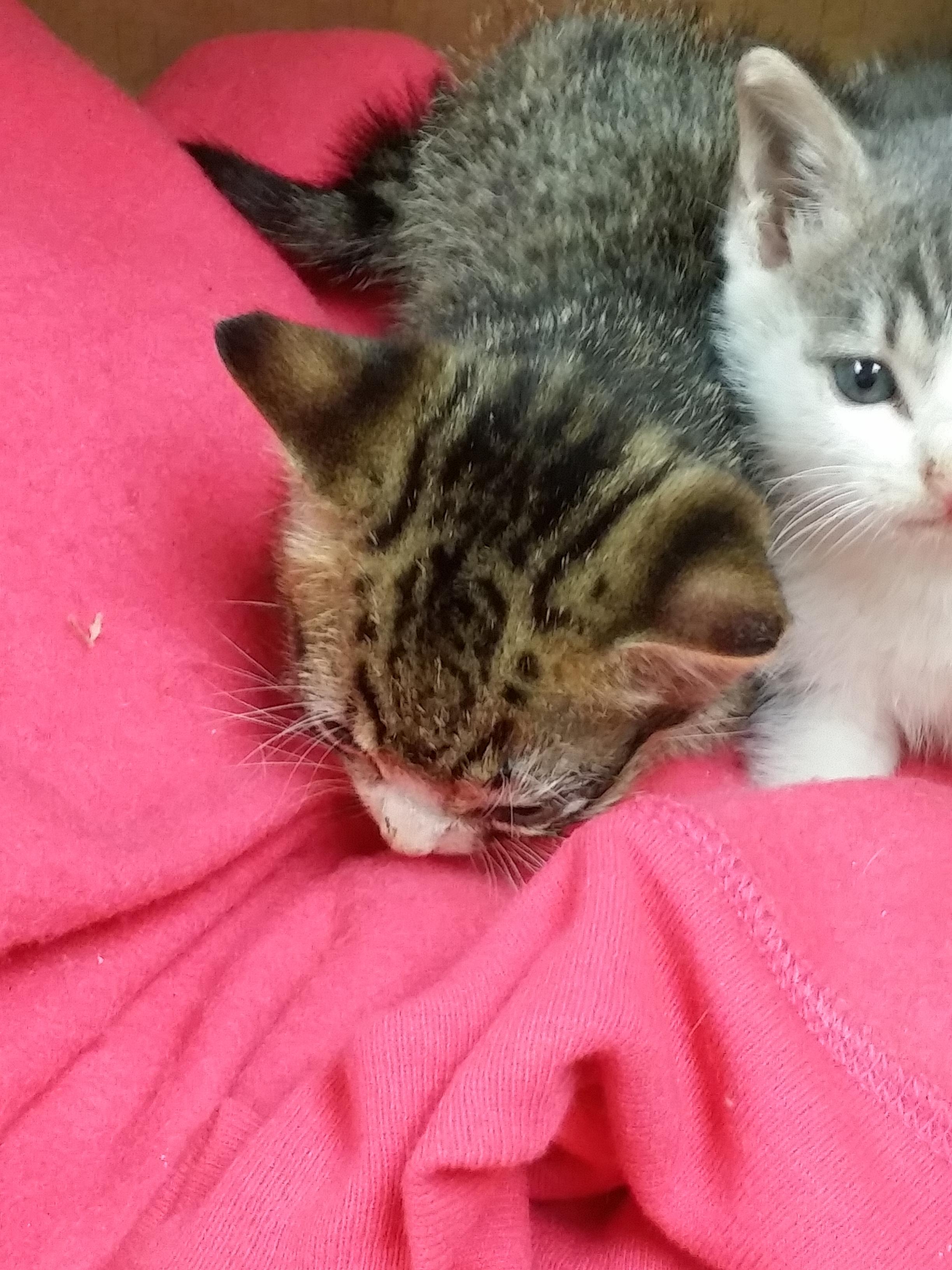I guess I need to give whoever abandoned them a little credit, at least they tried, but CHEERIOS? At any rate, we took them home. We stopped a Walmart for kitten formula, and were able to get a little into them. They're about ready to wean so we also got some Salmon pate, which when mixed with some milk they scoffed down; the grey and white more so than the tabby. After a $170 trip to the Vet yesterday they were declared moderately healthy except for the tabby having a cold and a lacerated eyelid and cornea. ARRRGH! We already have three cats and two dogs, so far their names are four and five, but we don't know which is which. Anybody want a kitty? Last edited by wodin; 01-25-2016 at 04:27 PM. Reason: grammer |