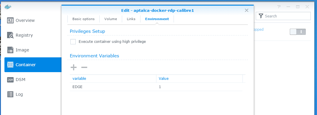 Could you type up some instructions on how you got this to run and work? I just got my Synology DS1515+ last week so I'm not all familiar with DSM and Docker. I did try to install Docker and download and ran the contain but it didn't run, so I guess there are some configuration that you would have to do. So if you could write down the steps you took to get yours working that would be really appreciated! |