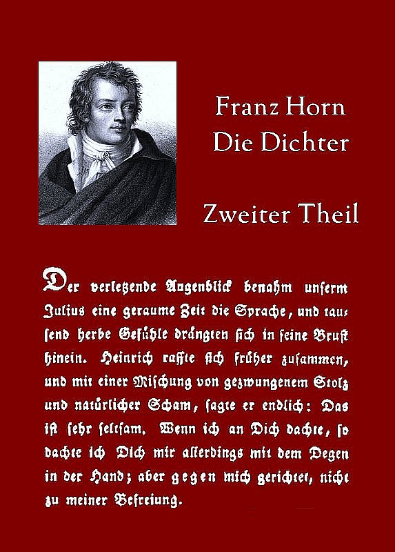 Franz (Christoph) Horn (* 30. Juli 1781 in Braunschweig; † 19. Juli 1837 in Berlin), deutscher Romanautor, Literaturkritiker, Literarhistoriker und Shakespeare-Kenner (vgl. wikipedia), veröffentlicht mehrere Romane, darunter: