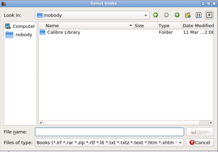 You can mount a new folder in the Volume tab: File/Folder: /volume1/*share_to_your_Calibre_New_folder*/ Mount Path: /Calibre_New So now when you are in Calibre. Click Add books then click My Computer then click on the / root folder, you should see your Calibre_New folder. Hope this helps. |