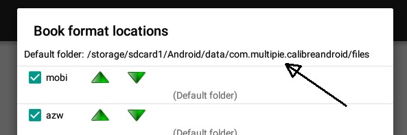 9. I press OK to close the Formats and Folders dialog then use the Back button to get to the main CC screen. I check the path Android/data/com.multipie.calibreandroid/files with ES file Explorer. The folder is empty, as it should be.