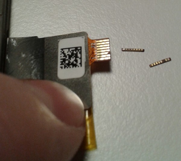 If anyone would like to take a look (please), here's the few pictures: PW1 disassembled Nothing seems out of ordinary to my untrained eye except a detail on the last two pics. You can see the corrosion on one of the connectors on the first one and the damage I've done after cleaning the corroded part on the second. Here are the cropped details of the male part (unfortunately I don't know if everything's fine inside the female connector on the motherboard, just couldn't see anything): Could this possibly be the source of the unresponsiveness? (still no screen response after assembly) I'd conclude this with the question from the end of my first post... Thanks and regards, Jim Last edited by jimkrane; 02-02-2016 at 10:27 AM. Reason: grammar, attachments |