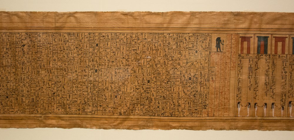 This is what an Egyptian scroll looks like: It's written in columns from top to bottom, with the columns themselves being read from right to left (just like modern Japanese). So when you're reading it, you unroll the scroll in your left hand, and roll it up in your right hand. No vertical scrolling .