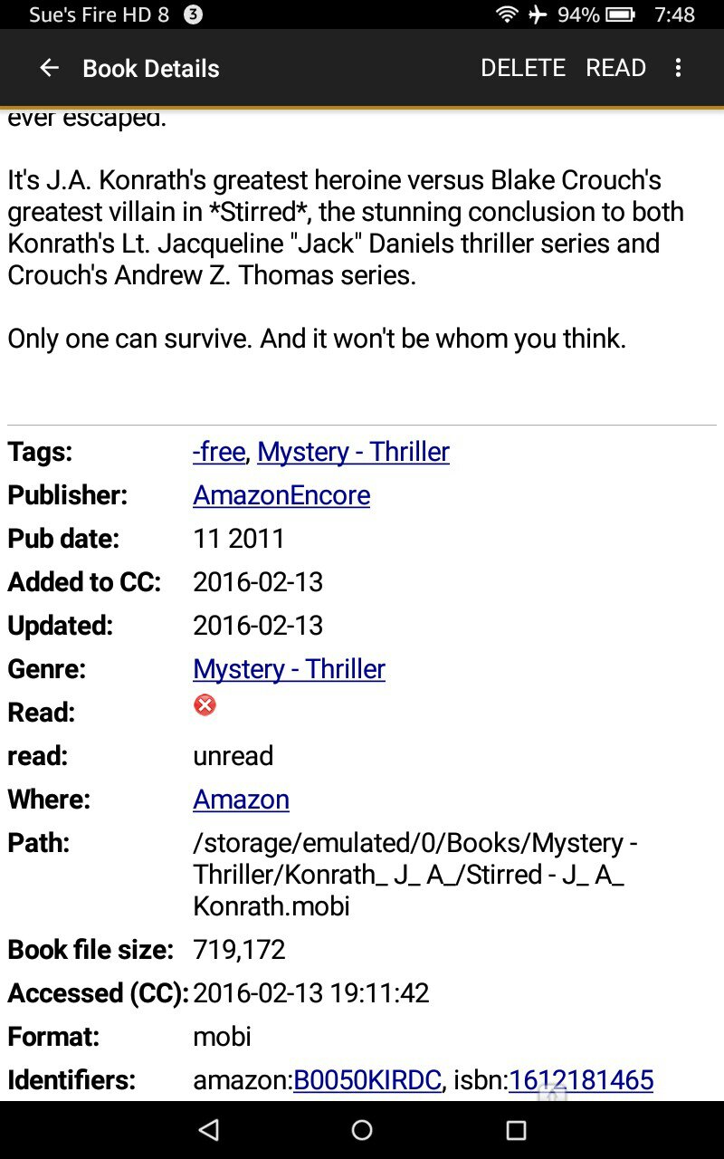 6. Delete the strange book. ES File Explorer says the book and the author folder are gone.