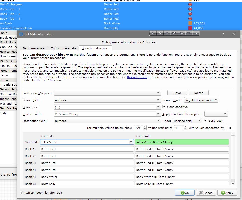 I know how to bulk add an author but that overwrites any other author that might be listed. I can't figure out how to add a second author to multiple books at once without deleting the author already listed. Any idea? |