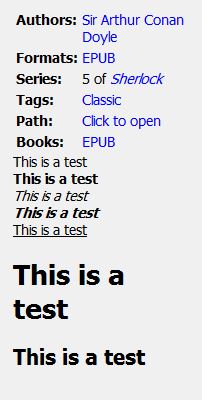 As a little test I added some formatting to a number of books (first screen shot) and tried bulk edit [Set the Comments...] (screen shot 2) and selected remove formatting and normal (hoping it would just delete the <hx> tags and the bolding and italicing, leaving the basic text