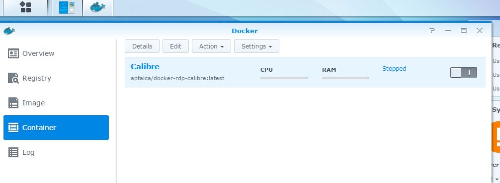 You may follow these steps: Step-1: copy your existing Calibre Library from your PC to Synology Step-2: On DSM (Synology), go to App Center to download Docker Step-3: On DSM, go to Main Menu, find Docker app, and click to run it Step-4: Click Registry tab on the left, type "Calibre" to search for Aptalca/docker-rdp-calibre, click at aptalca...., and click Download button on the top Step-5: Click Image tab on the left, you will see aptalca....image is being downloaded. Wait till the download completed and do the setup before running it. Last edited by bthoven; 01-28-2016 at 12:49 AM. |