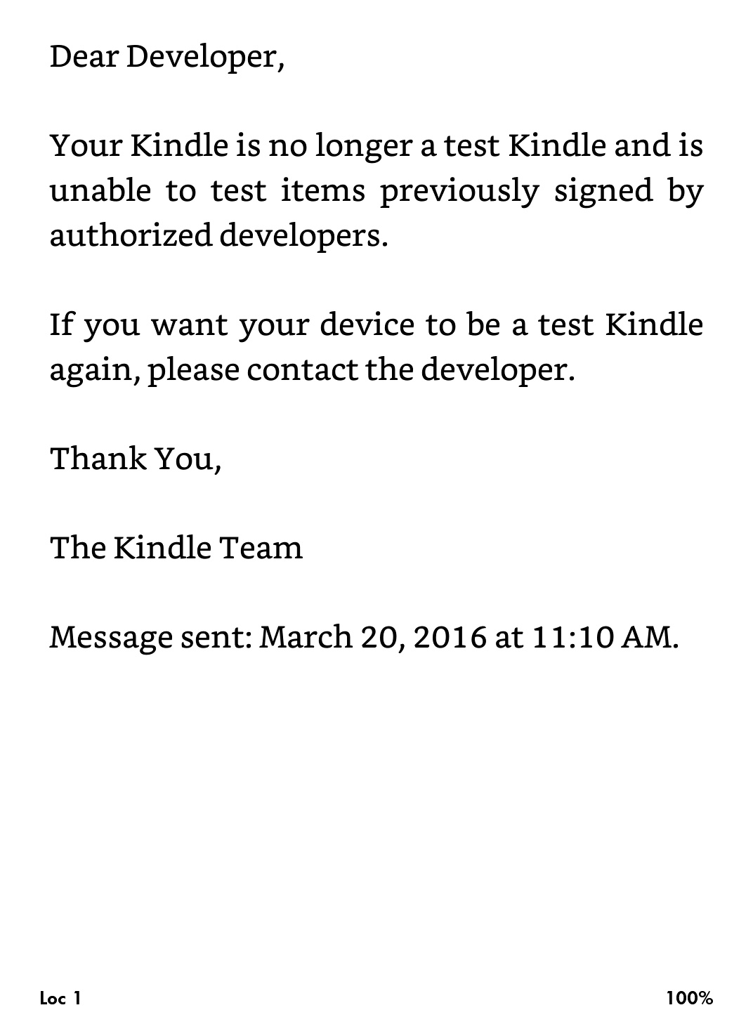 You just erased the developer keys (including the MKK keys). You did not lose the device jailbreak (only the Kindlet jailbreak - which you can re-install). Note: You had better trim that image down to size before a moderator can find your GPS coords and nuke you in your sleep. Last edited by knc1; 03-20-2016 at 01:23 AM. |