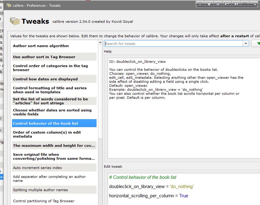 Just in case it's germane, I have the "Control behaviour of the book list" tweak set thusly: BR |