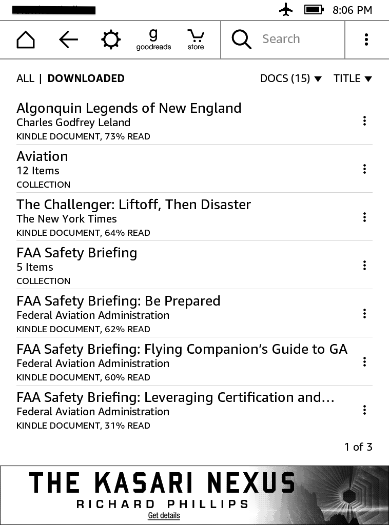 for not being clear. I am looking under downloaded items which shows includes my sideloaded documents. For example, the docs in the attachments are mostly sideloaded documents either from the FAA or the New York Times, or books in the public domain. FYI, if I change to "All", I only see my two collectionsI don't have that many items on my kindle (65 at present). And I think I would have noticed the "dump messages" file. But perhaps I am recognizing the item I am looking for, always possible. So if someone can tell me what the "dump message" document will be called, I can look for that specific title or do a search. And I have looked in my documents folder as well. And if I should look in all downloaded (includes side loaded) or all docs. Last edited by Eagle Reader; 04-09-2016 at 10:40 PM. |
