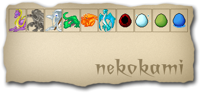 Edit: Actually, one hatchling and one egg are presently fogged. You might need to shift-reload to see the current status of the dragons. pshrynk, yes, the green dragon is now as large as he's going to get. I tried to see if he and the white dragon might be interested in one another, but they said "nothing doing" so I've concluded that they see each other more as siblings or something. (He's the only male dragon I've got at present.) |