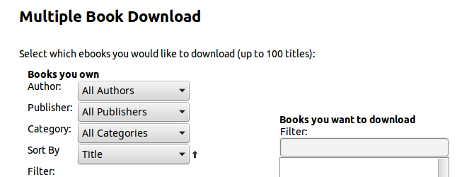 You can then use filter to bulk download your ebooks in groups of One Hundred.