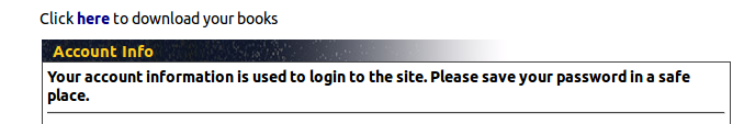 In order to bring it back to Baen, I noticed that it automatically adds the Baen Free Library to the list of books you can download. I have three accounts there, and I ended up downloading the books from the free library with each account. |