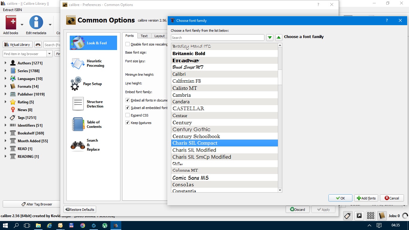 Remove from Calibre list of AVAILABLE "Embed Font Family"
