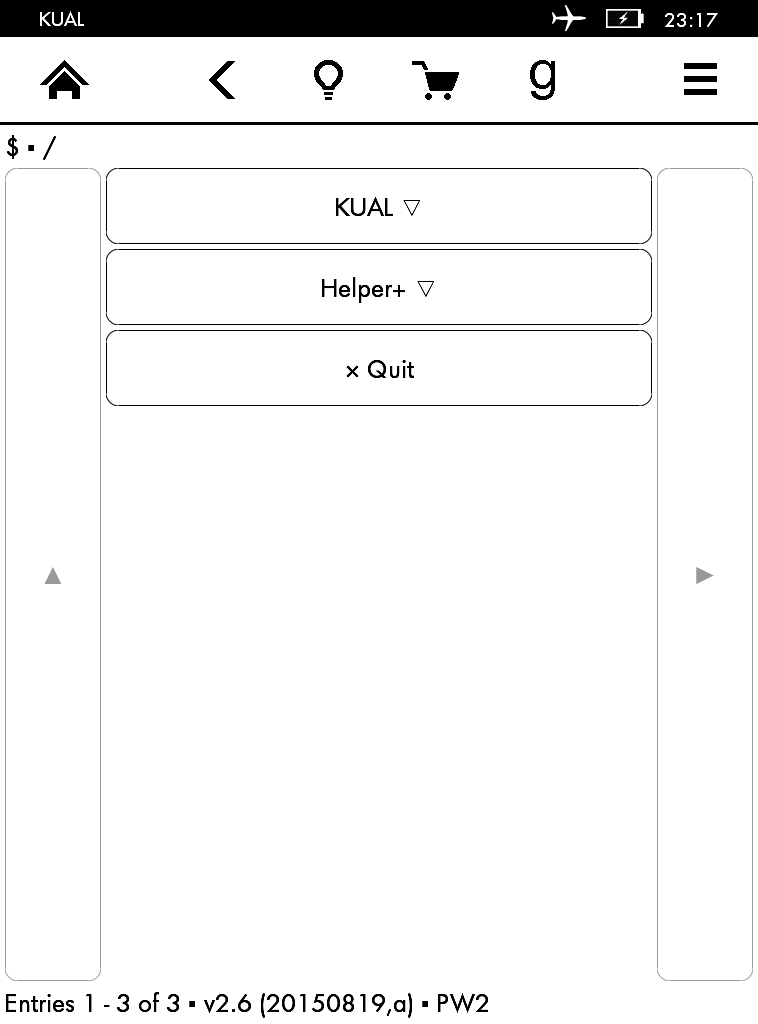 Thanks. I actually didn't have the device jailbroken for long before I started futzing with it, so I haven't install KUAL yet. I guess that's what I get for being impatient. I'll make that my next step.