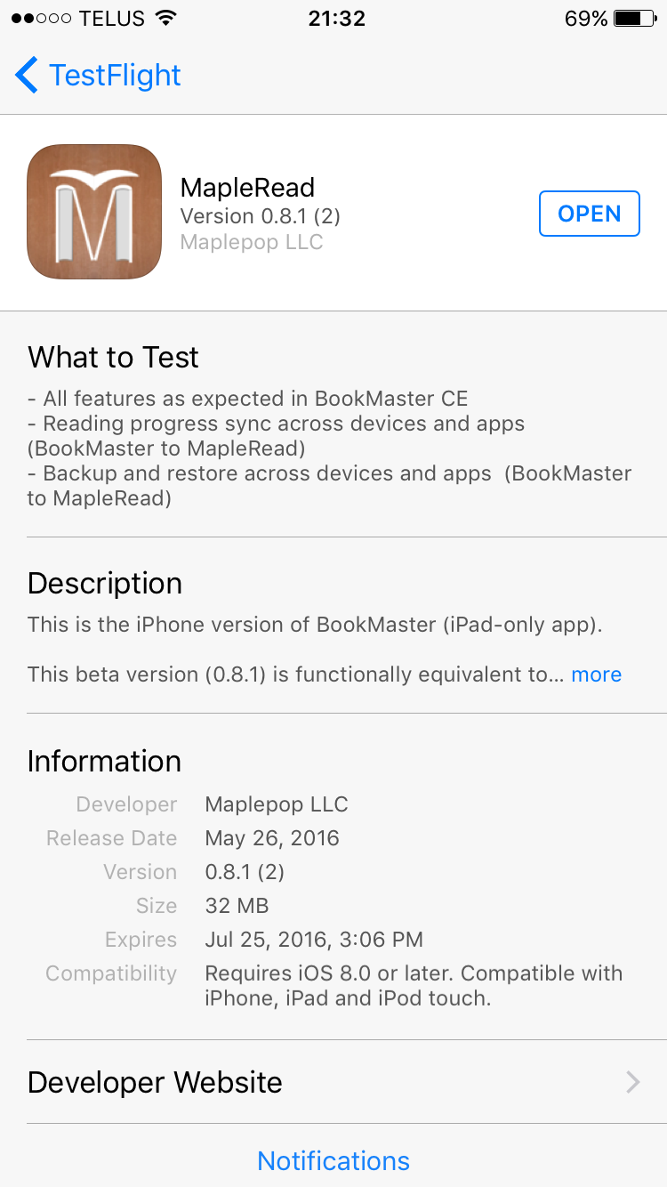 MapleRead is the upcoming iPhone version of BookMaster, our highly acclaimed ebook reader app for iPad. We are very excited to tell you that it is now ready for beta testing, starting today (May 26, 2016).