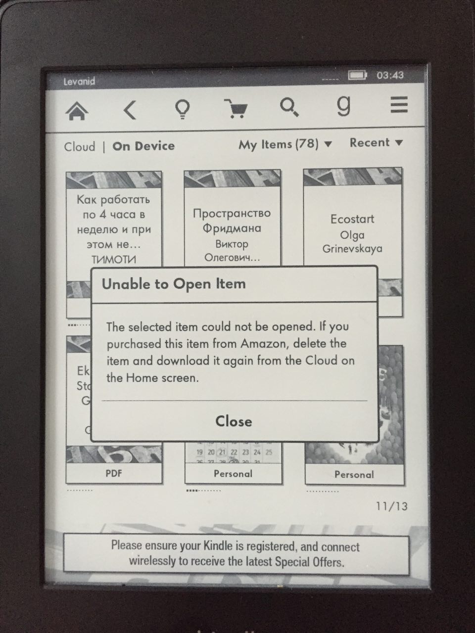 Sorry for not mentioning before, I left it on a wall charger. It charged until the led turned green - stayed for about 1 day. I did try holding power button up to 1 minute. Device screen just flashes and then stucks on Kindle boot screen again. The serial number is clearly visible on image attached - first six digits are B024 16 My MacBook doesn't react on device being connected. But if the battery is completely drained the Parallels mounts kindle device on XP - it "finds" device drive but is unable to open it (corrupted?) Last edited by levanid; 06-13-2016 at 06:27 PM. |