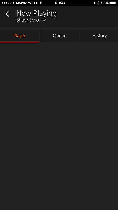 My iPad occasionally shows what's playing, but the iPhone never does. I attached a screenshot of a blank screen because that is all I get. the web app works very well, except it keeps logging off after an hour or less. That is rather annoying.
