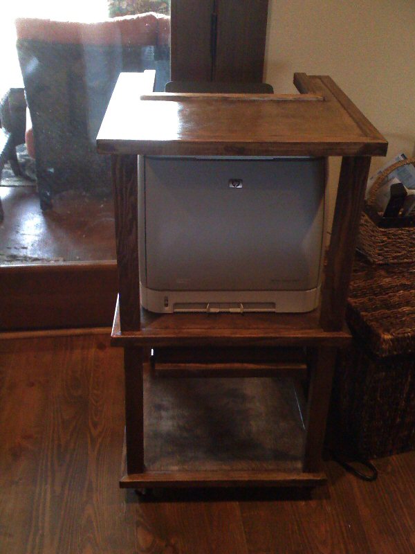 Hey .... I finished the printer stand for my neighbor!! Making the changes she wanted was a bit tricky (because I didn't want to take the stupid thing completely apart), but it's FINISHED!!