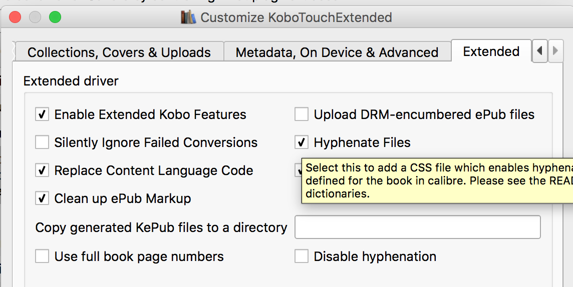 DEBUG:    0.0 KoboTouch:books - driver options= Driver:KoboTouchExtended, Options - format_map: [u'kepub', u'epub', u'cbr', u'cbz', u'pdf', u'txt'], use_subdirs: True, read_metadata: True, use_author_sort: False, save_template: books/{author_sort}/{title}, extra_customization: [], manage_collections: True, collections_columns: series, tags, create_collections: True, delete_empty_collections: True, upload_covers: False, keep_cover_aspect: False, upload_grayscale: False, show_archived_books: False, show_previews: False, show_recommendations: False, update_series: True, update_device_metadata: True, modify_css: False, support_newer_firmware: False, debugging_title: , driver_version: 2.7.2, extra_features: True, upload_encumbered: False, skip_failed: False, hyphenate: True, replace_lang: False, smarten_punctuation: False, clean_markup: False, full_page_numbers: False, disable_hyphenation: False, file_copy_dir: