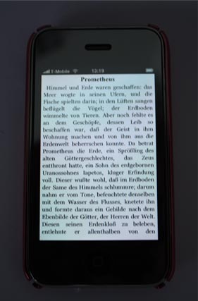 ![]() Ich hab mittlerweile einiges als Epub auf dem Handy (iPhone) und ich genieße es dermaßen, schnell was zu lesen, wenn die S-Bahn mal wieder Verspätung hat o.ä.; neulich hab ich an der Supermarktkasse gelesen, okay, das ist leicht übertrieben, aber die Schlange war echt lang ![]() Unten sieht man, wie Schwab I auf dem iPhone aussieht. Das TOC-Problem stört nicht, ich nehm einfach die Bookmarks (s. Bild2). |