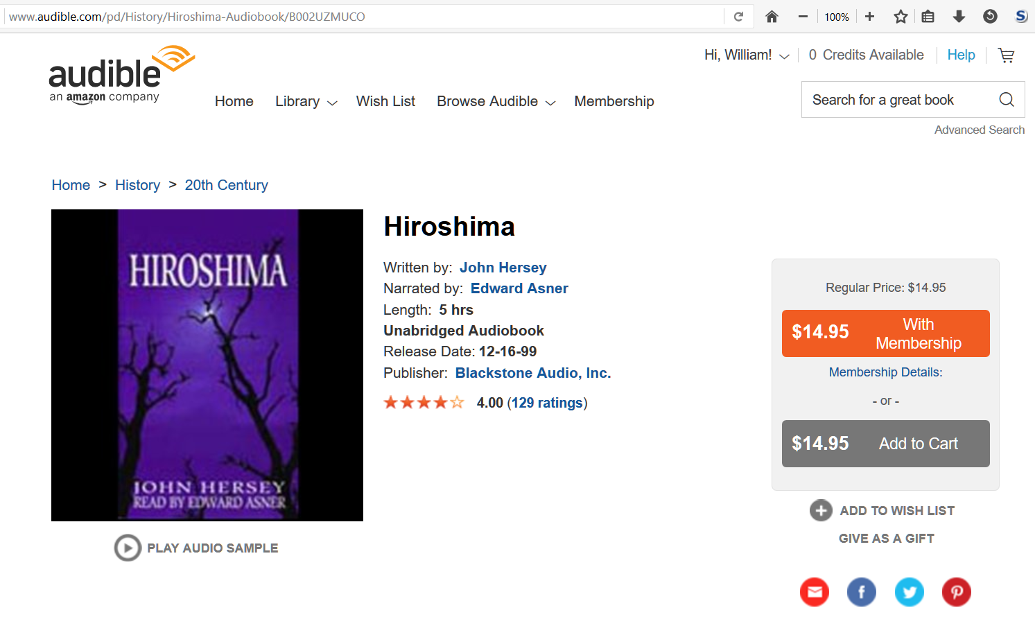 Second Hiroshima. Hope that Ed Asner version isn't too steep.