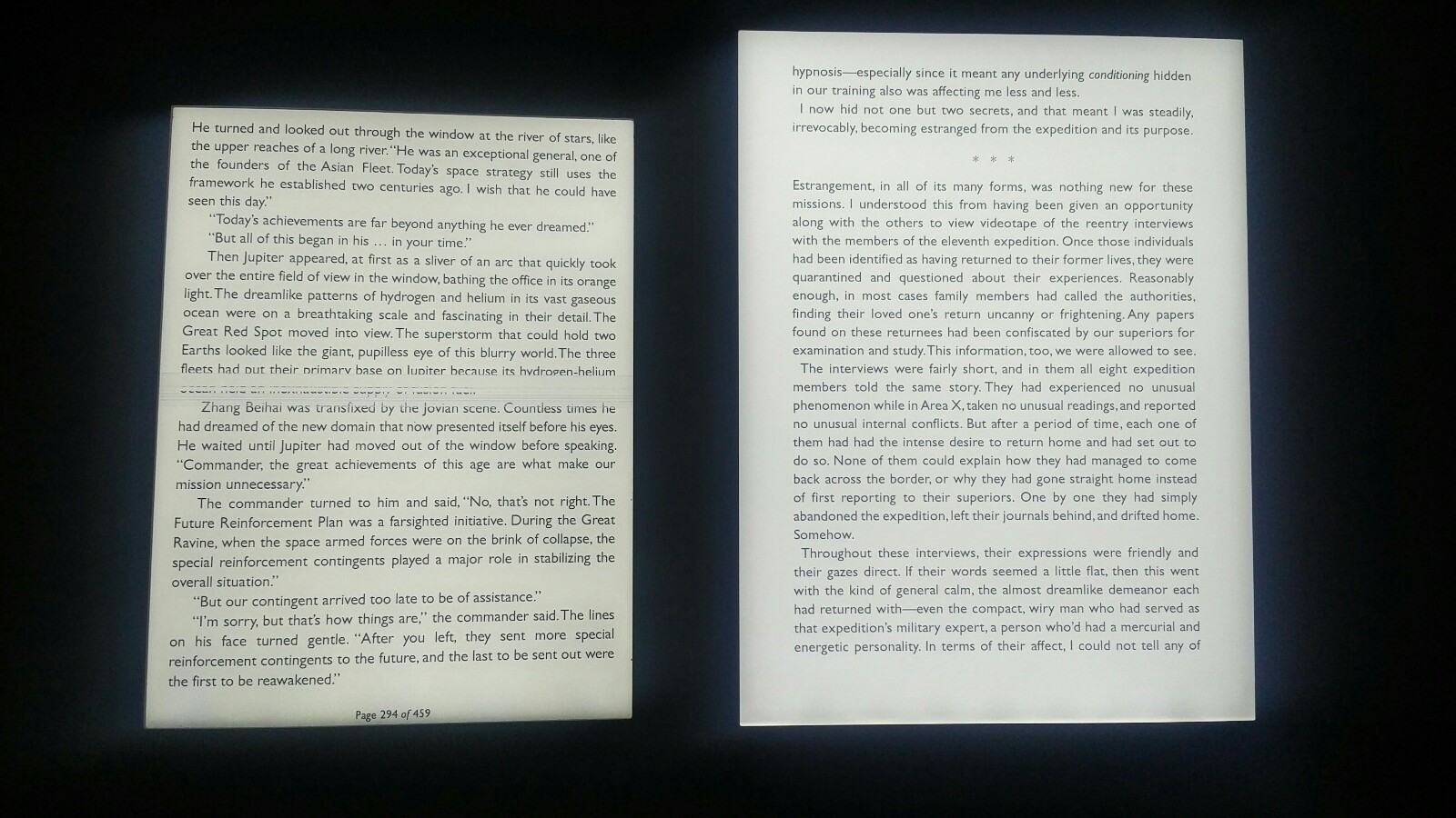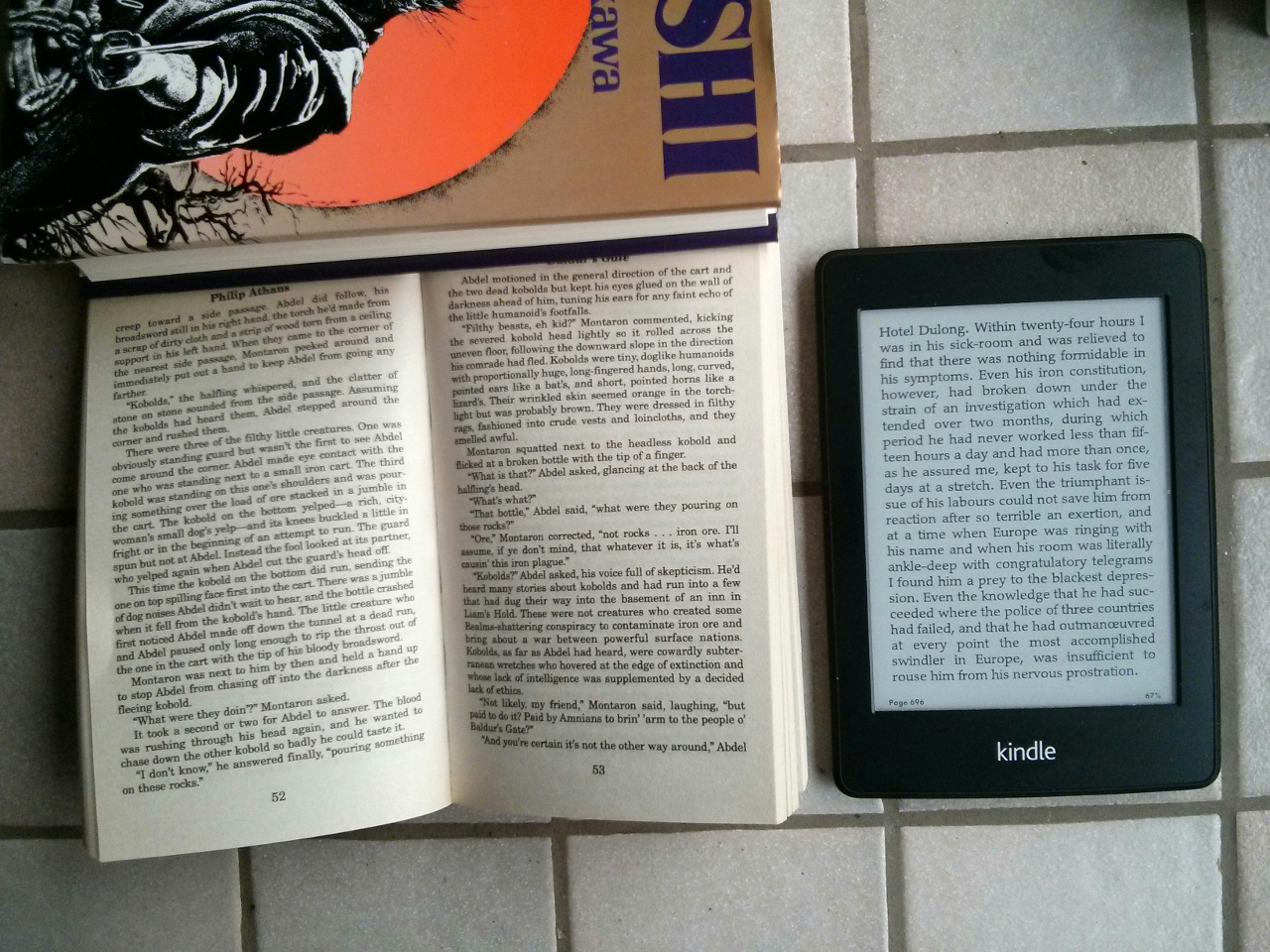 Also, I'm comparing it to one of the very few hard covers and mass market paperbacks I still have. While the KA1 can't display the amount of text the hard cover can, it seems to get close to, or even exceed, the text shown in a mass market paperback. I haven't counted to make sure. The Kindle obviously can't keep up by a long shot because it's so much smaller.