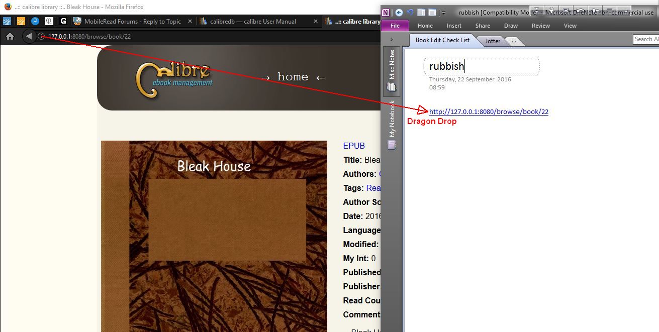 But in actual fact what I do is right click the page and copy the Rich HTML link and paste that - its one of the options of the CoLT extension. For that book it looks like "..:: calibre library ::.. Bleak House"