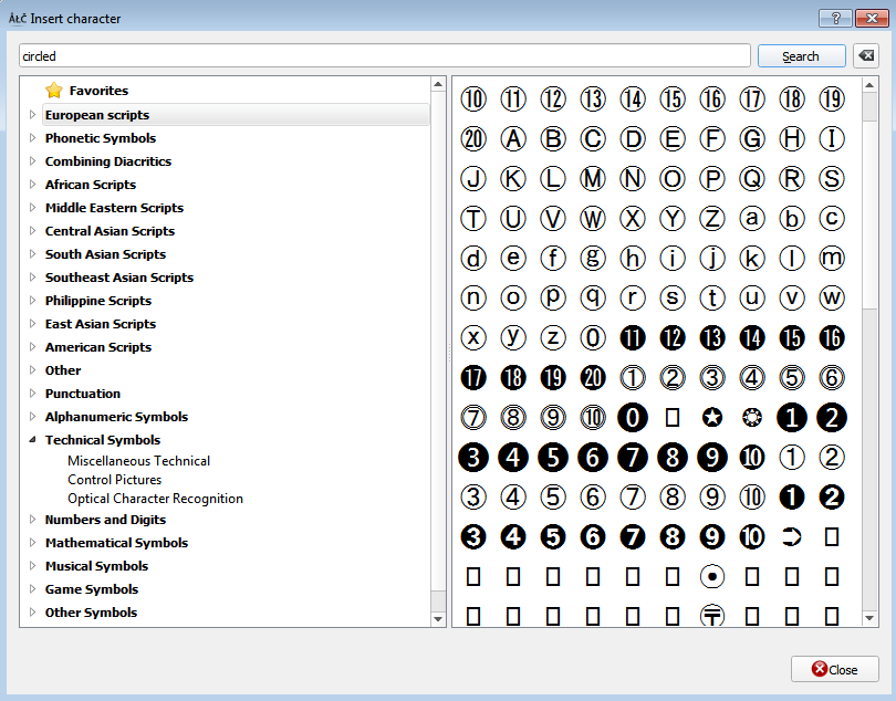 Just wondering if it's possible somehow to paste or import additional special characters into open Sigil documents along the lines of the 'copyright' symbol: ©, only with numerals such as '1' and '2' inside the circle instead of letters like 'C' - in this case - or 'R' like the 'Registered' symbol also known to all: ® ..? Perhaps a plugin permits this?