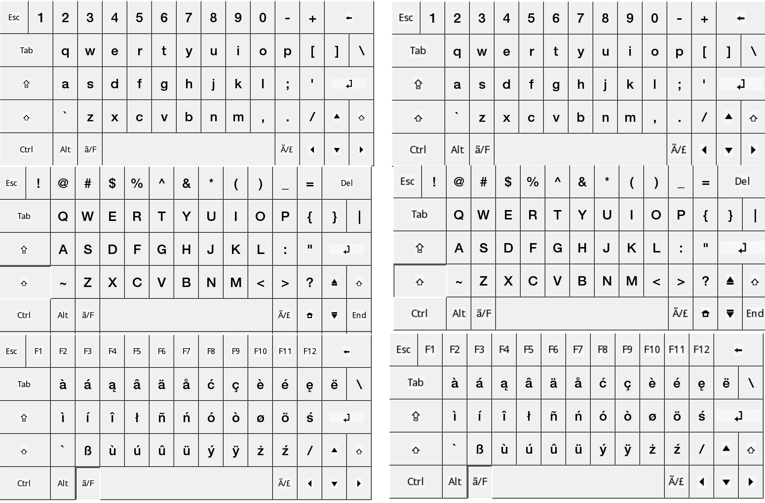 Tested OK on pw1, pw3 and kt3. They look better now(pw1 and pw3). baf has included a logic in the kterm.sh file which checks the resolution of the kindle and selects the appropriate layout files. But this has to be updated for the 300 ppi kindles. And also, of course, all the 3 sets of image files need to be available. For now, just delete all the files in the img/ folder and replace them from the zip file appropriate to your kindle's resolution. Some before/after screenshots attached to show the differences. In the first image, the differences for a PW1 are shown. The 1st column shows the default, shifted and function key shifted views with the existing key images. The 2nd column shows the same with the new key images. The second image shows the same comparison for the PW3. Last edited by nasser; 10-02-2016 at 11:51 AM. Reason: added screenshots |
