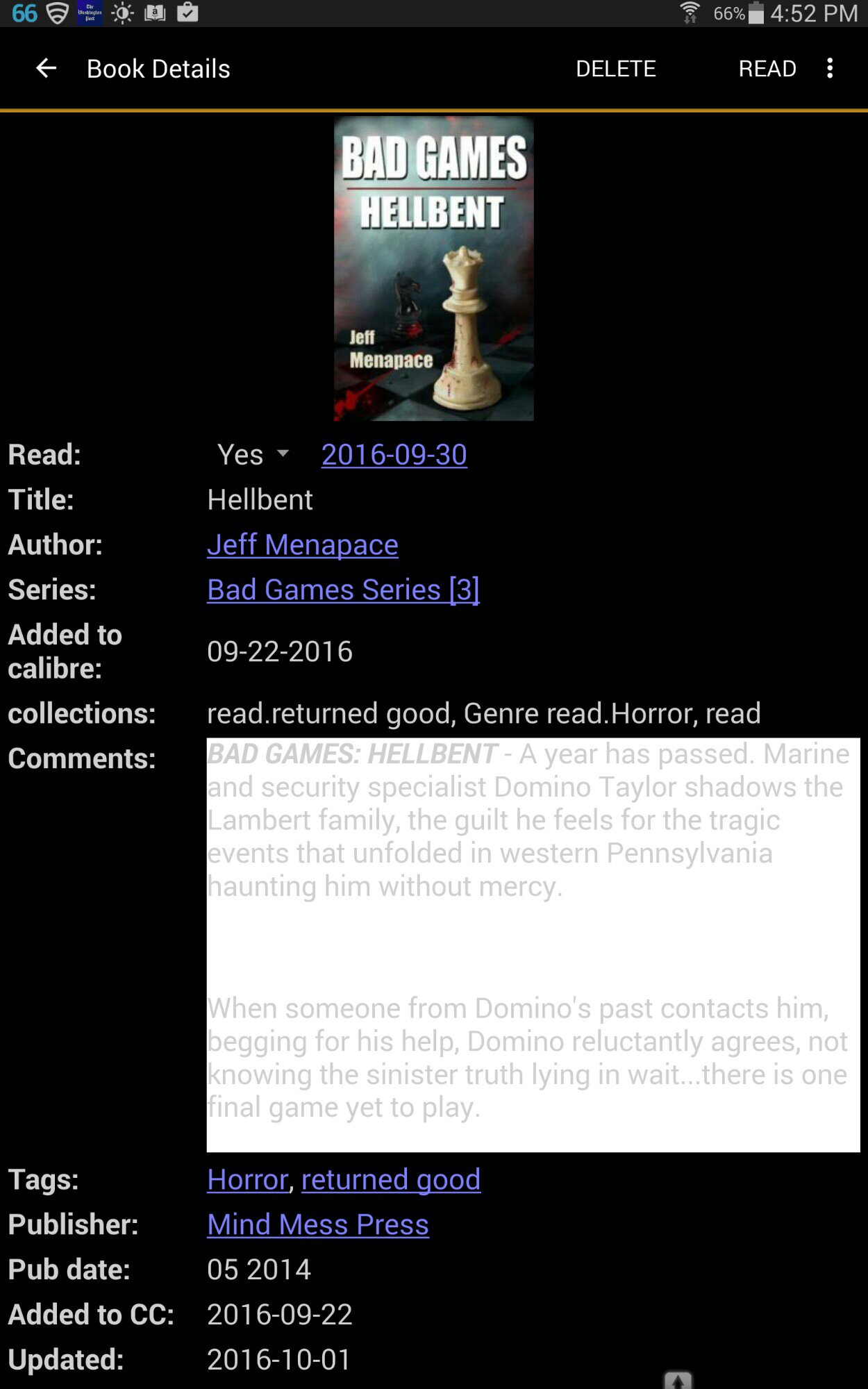 ![]() On my Samsung Tab S 8.4 on Kit Kat the comments in book details has a white background with light gray letters. This same book looks fine on my Samsung S6 on Lollipop. I really like the dark theme. |