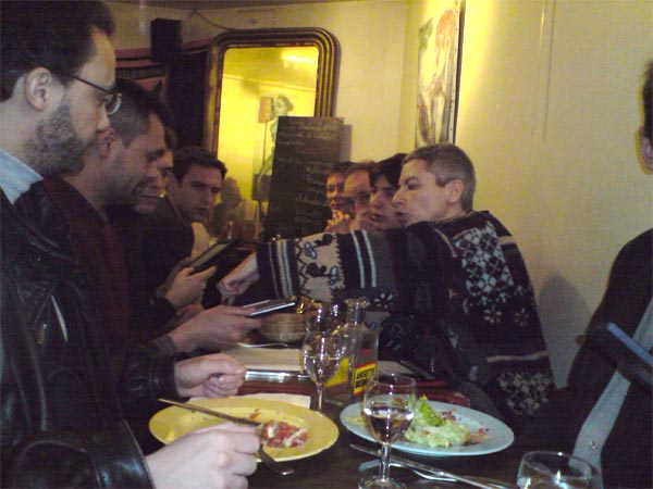 il y en a qui cumulent les gadgets ![]() même à table ça discute ferme ! sélection des gadgets présents : ipod touch, cybook Gen3, sony 505, eb1150, cybook Gen3 (bis), Sony 700, Iliad, Nokia 810, Palm |
