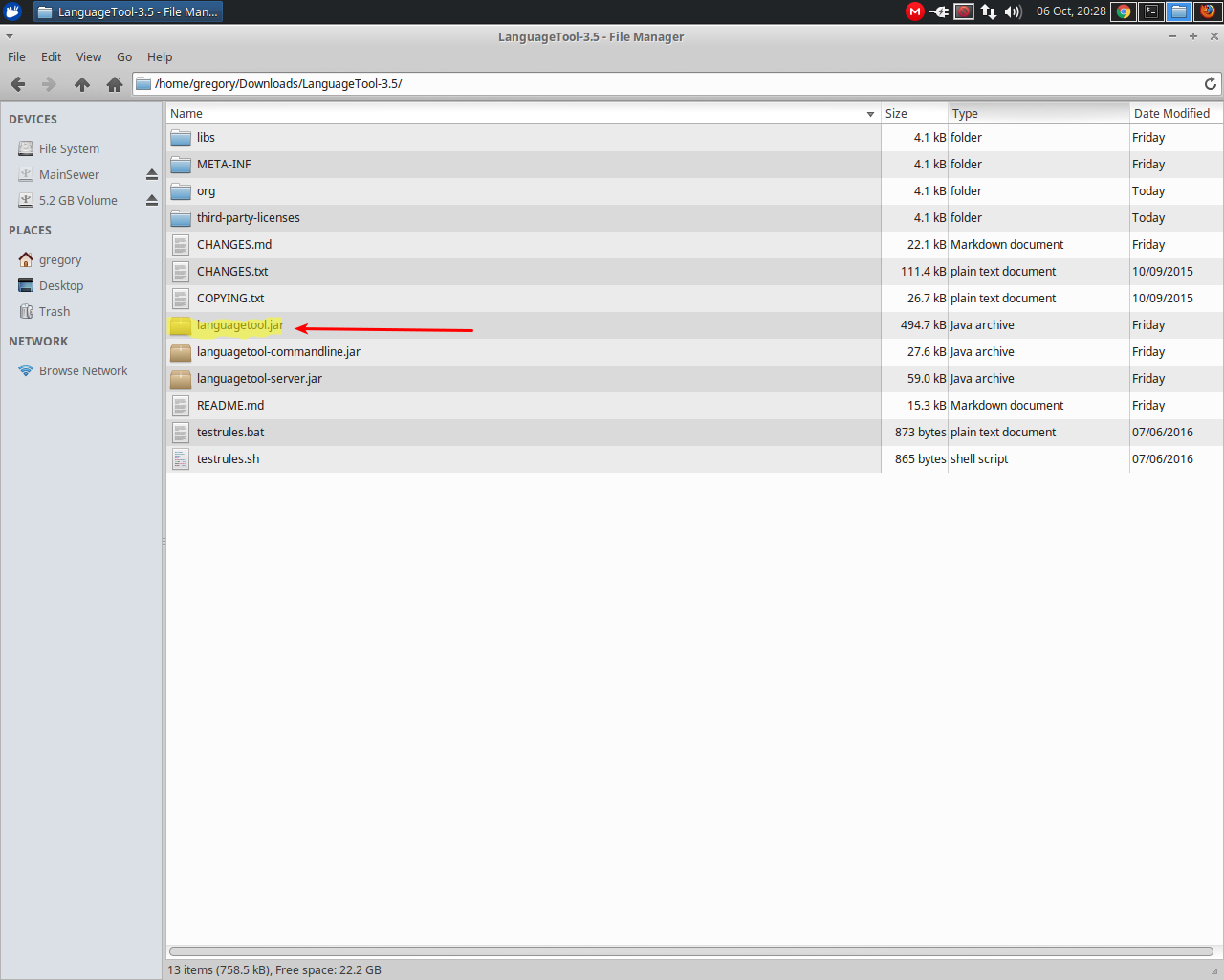 5) Double left clicked on the brown (see 187) languagetool.jar (whatever it is)
