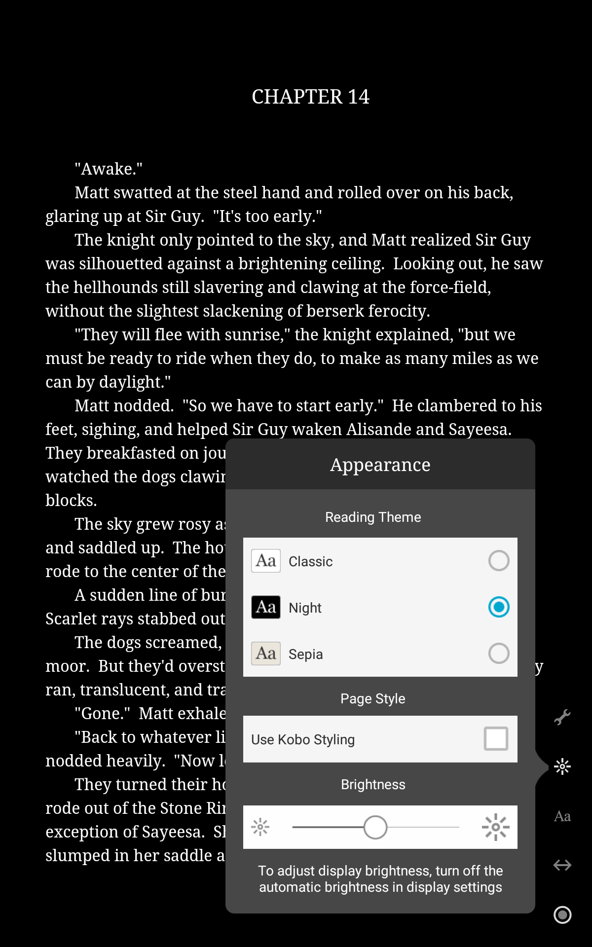 I use it with white text on black background ![]() Tap the centre of the screen, then the sun icon at the bottom EDIT: And your screen orientation is in the settings icon beside it to the right Last edited by HarryHutton; 10-07-2016 at 01:23 AM. |