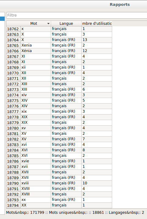 Putting the Calibre editor "report" to good use, I obtained a list of Roman digits (see screenshot). I wish to enclose them in a span only if they are followed by the expression Code: