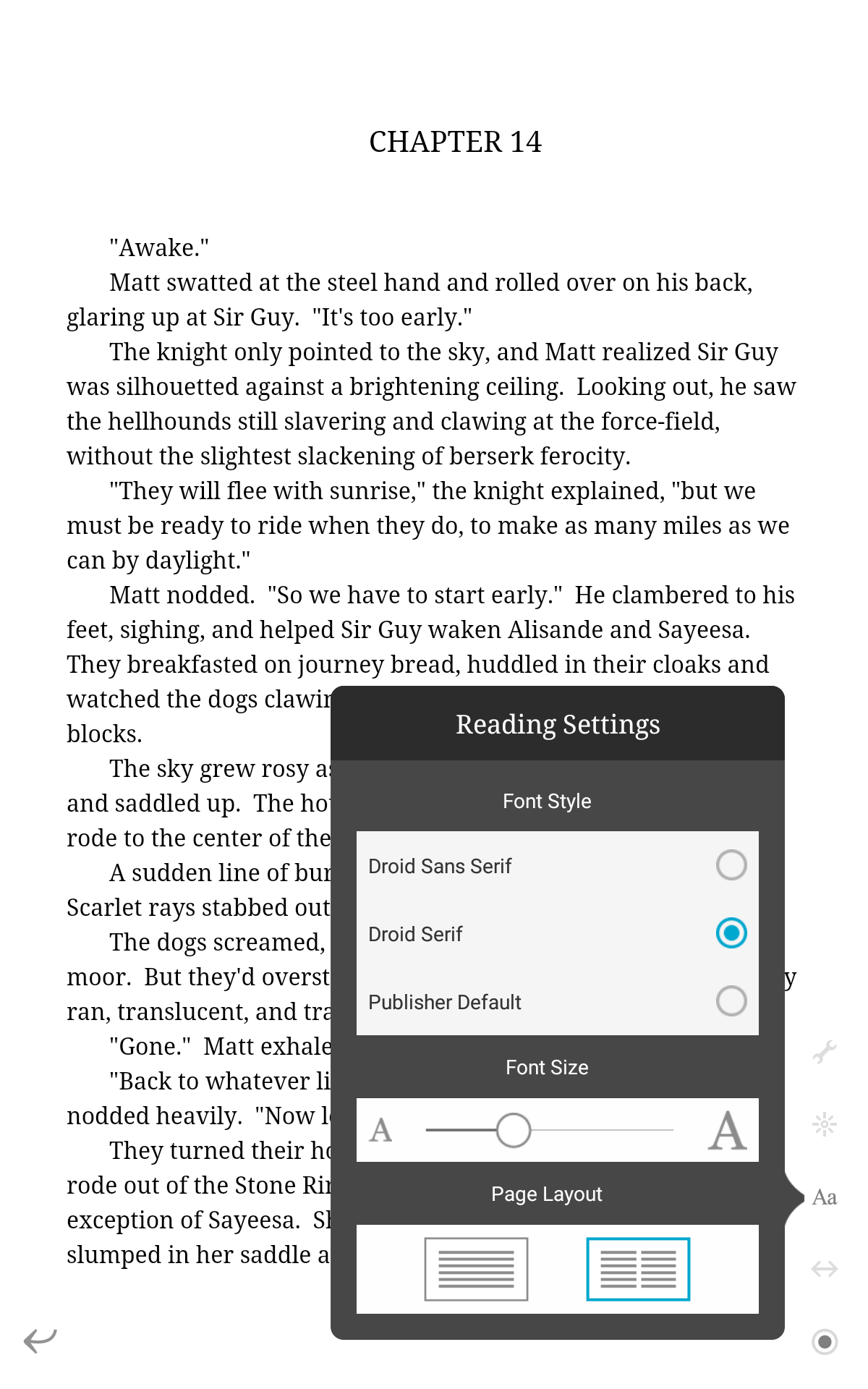 I've attached some screenshots from my Nexus 7 HD to show what the menus look like on it. Though I'm not overly fond of how the app stores sideloaded epubs, my limited use has not run into any of what I would consider as showstopper bugs in this version Last edited by DNSB; 10-09-2016 at 05:31 AM. Reason: added the "in this version" disclaimer  |