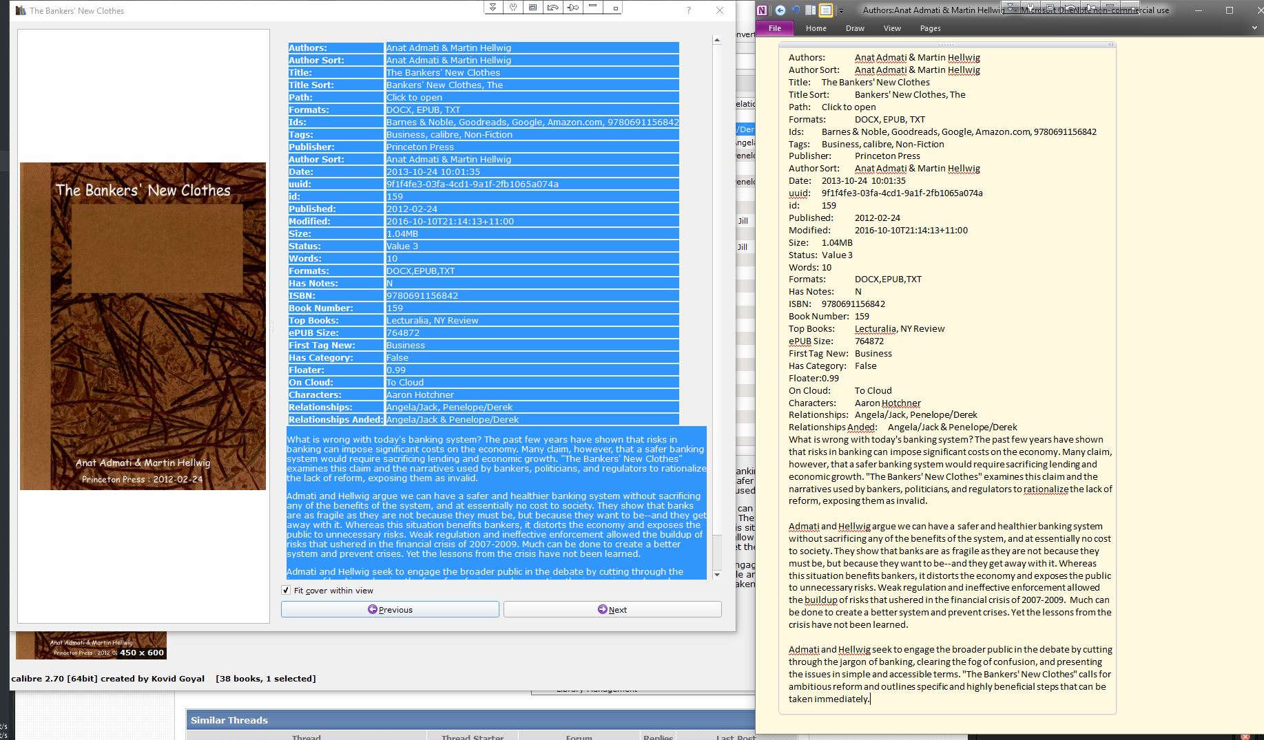 In the following screen shot I pressed 'I' on the book I wanted, swiped the details with the mouse, hit Ctrl+C to copy it, Win+N to pop a new ON note. and Ctrl+V to paste.