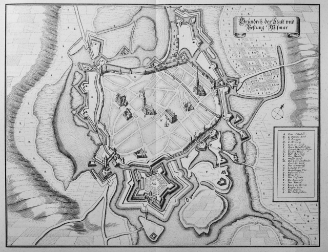 Spannend! Normalerweise quillt ja so eine Stadt ziemlich schnell über ihre Verteidigungsbauten hinaus - hier aber nicht. Bemerkenswert finde ich daher nicht nur die für eine Stadt ziemlich ausführlichen Befestigungsanlagen (Stadtmauer und zwei vorgelagerte Gräben und Wälle, wenn ich das richtig sehe), sondern auch, dass in den Jahrhunderten, in denen eine solche Befestigungsanlage keinen praktischen Verteidigungswert mehr hatte, keiner auf die Idee gekommen ist, all das schöne Land zu besiedeln und die Stadttore zu verbreitern/abzureißen, so dass da mal Fahrzeuge in beide Richtungen gleichzeitig durchkommen usw.